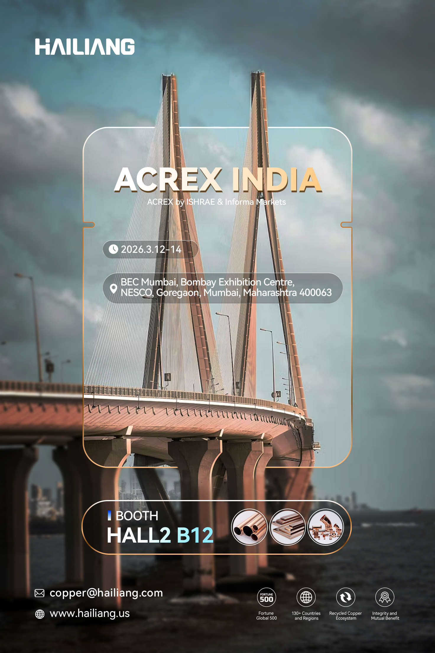 Hailiang warmly invites you to visit our booth at the ACREX from March 12–14, 2026 in India. Find us at Booth HALL2 B12.